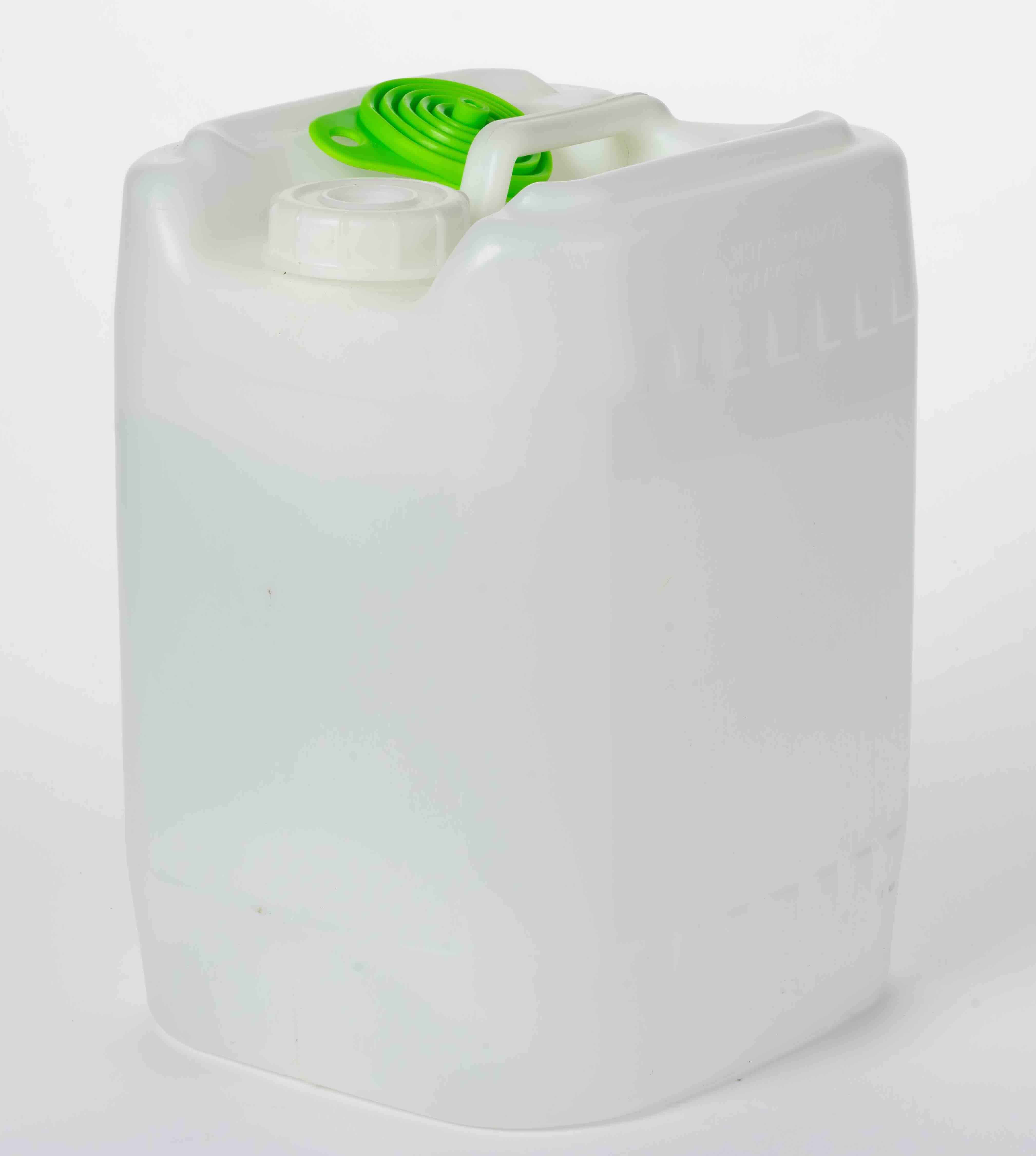 Ethanol (formulated per World Health Organization (WHO) standards) sanitizes hands! 19 liters (5 gallons) in returnable plastic jerrycan with green plastic funnel and box for pre-paid jerrycan return. Ready to use (RTU).